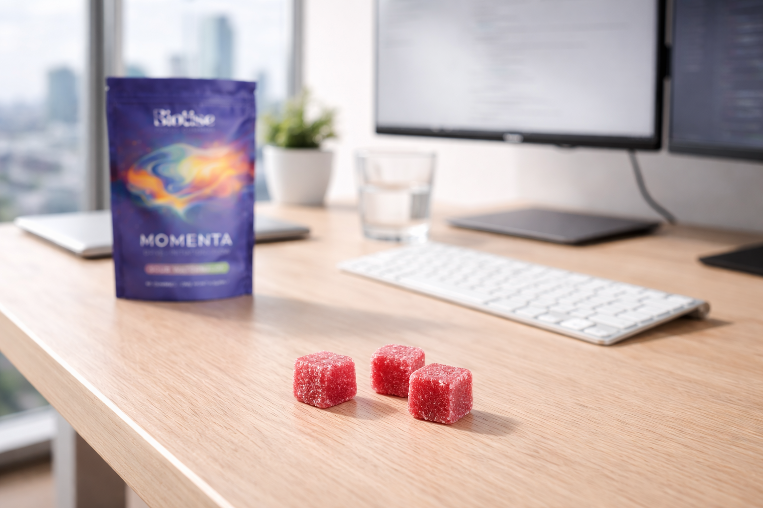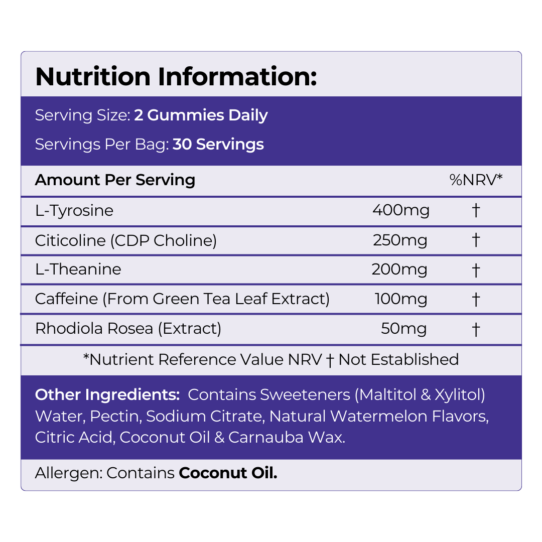 Chew 2 gummies 30 minutes before your first big task. No water needed, no pill organiser, just chew and go.